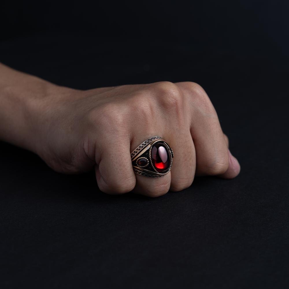 خاتم رجالي فضة عيار 925 - حجر أونكس أحمر