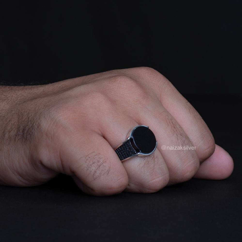 خاتم رجالي فضة عيار 925 - حجر اونكس اسود