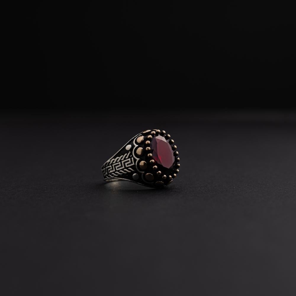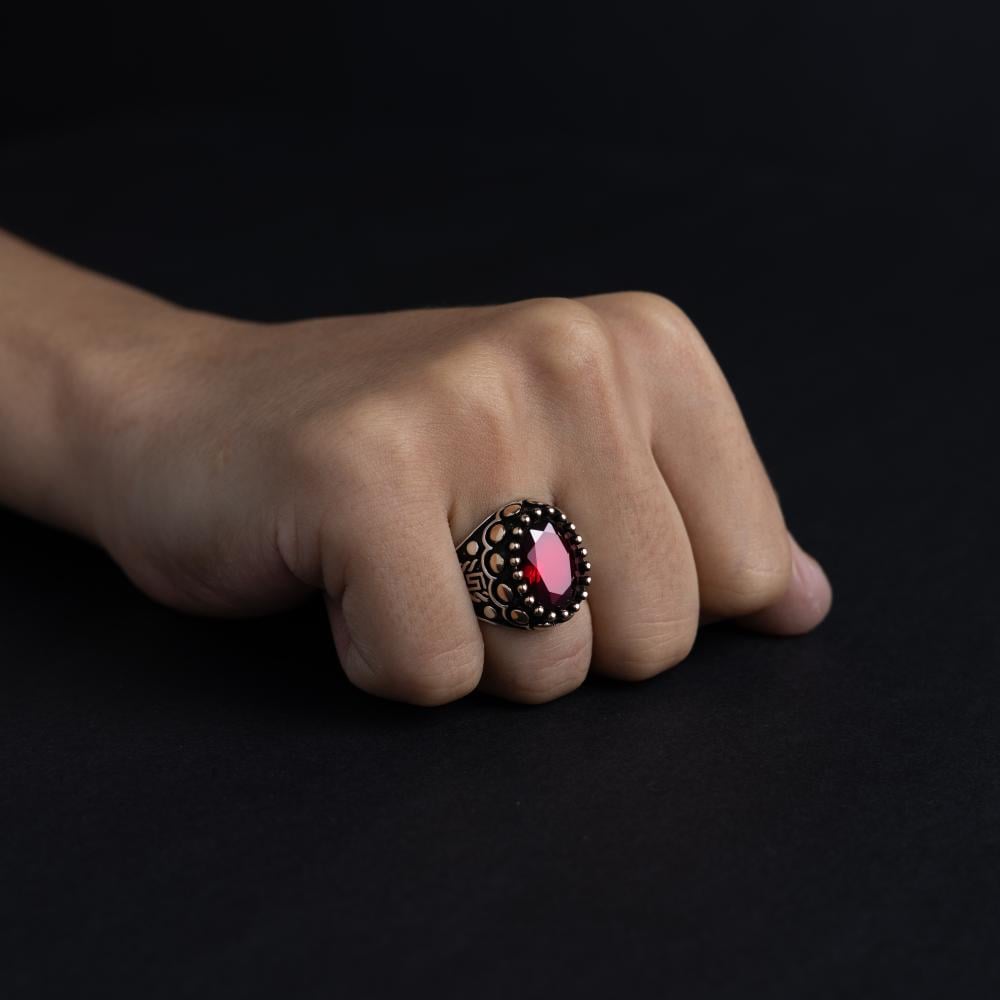 خاتم رجالي فضة عيار 925 - حجر زركون أحمر