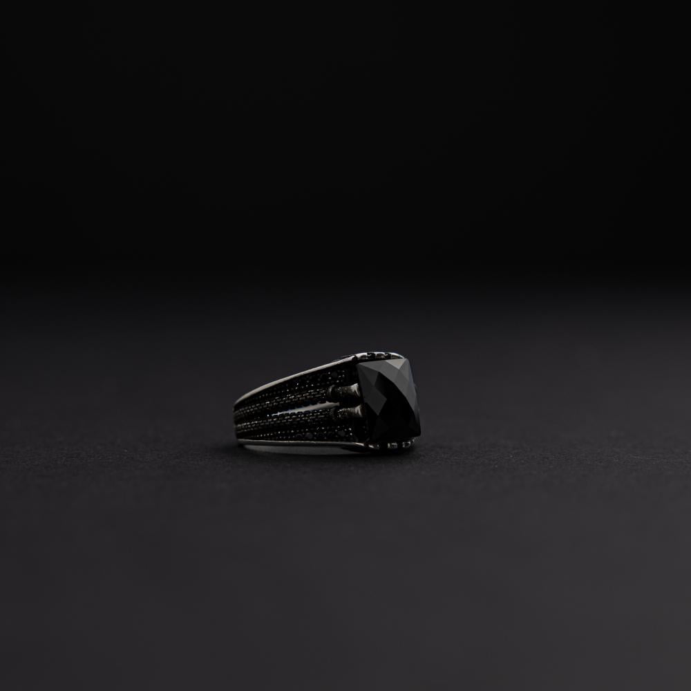 خاتم رجالي فضة عيار 925 - حجر زركون أسود