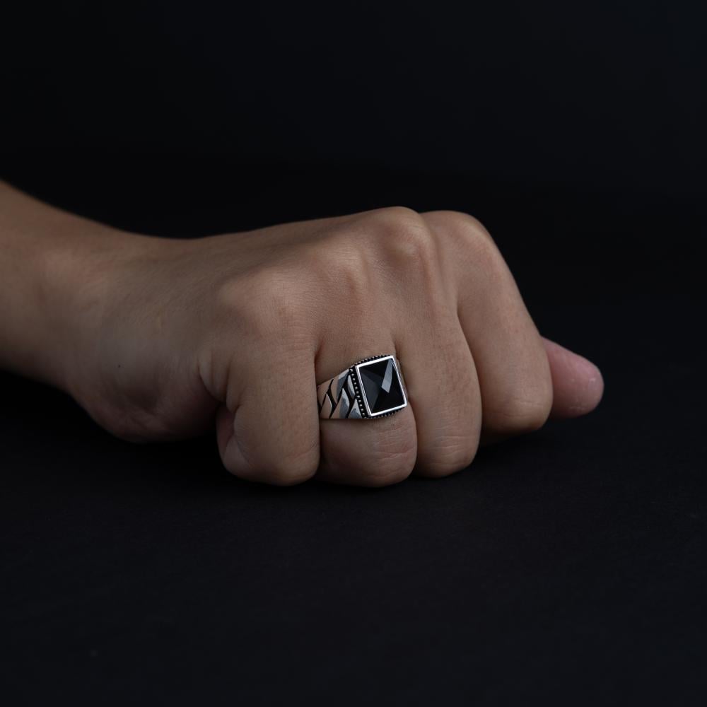 خاتم رجالي فضة عيار 925 - حجر زركون أسود