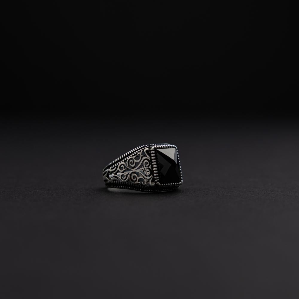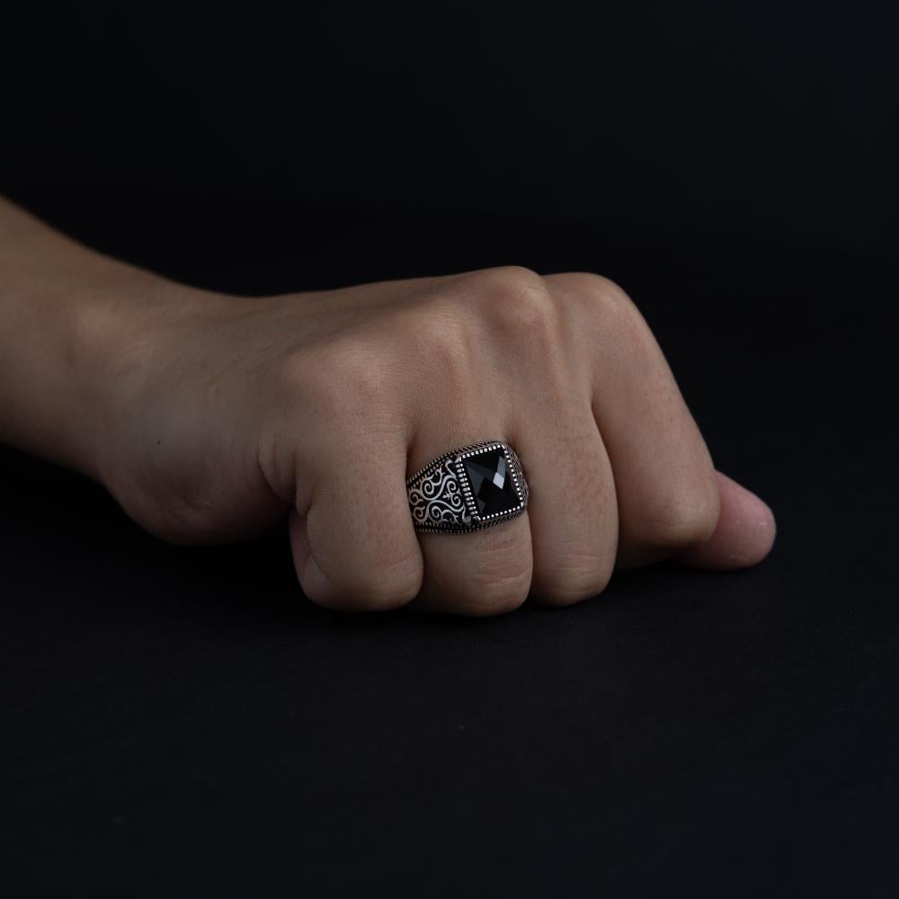 خاتم رجالي فضة عيار 925 - حجر زركون أسود