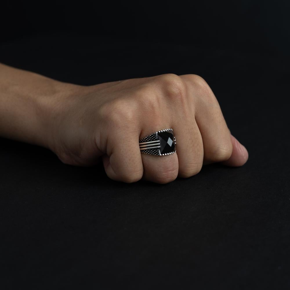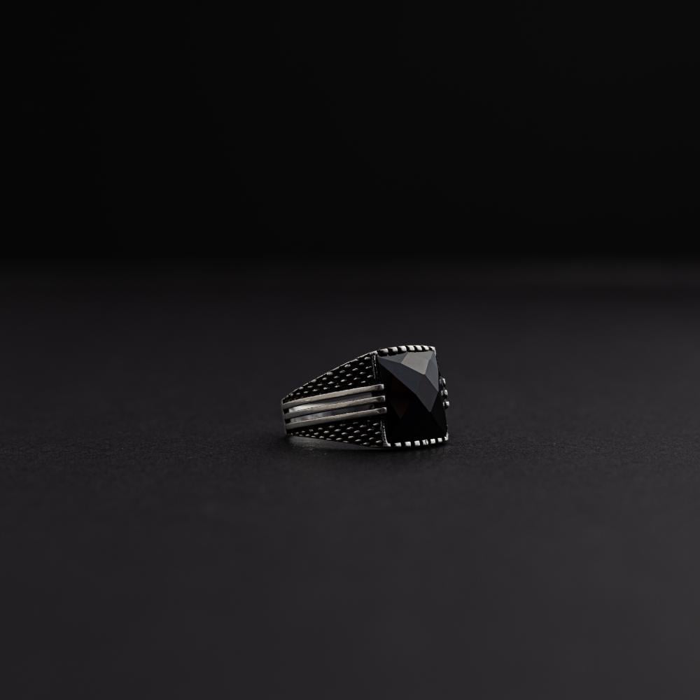 خاتم رجالي فضة عيار 925 - حجر زركون أسود