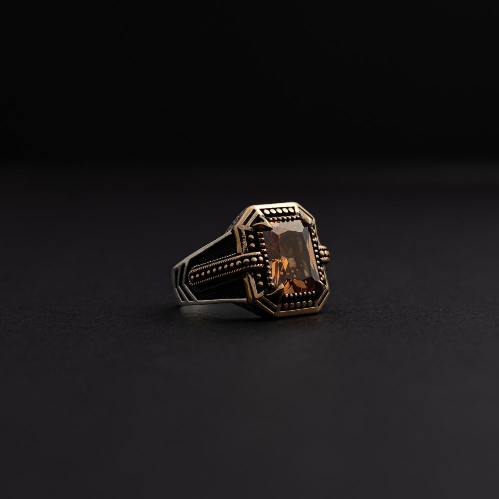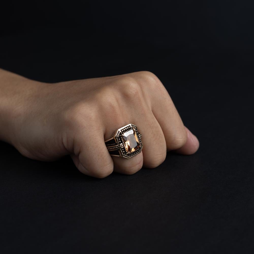 خاتم رجالي فضة عيار 925 - حجر زركون أصفر